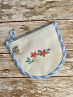 These handmade zipper purses are crafted from repurposed vintage and embroidered fabrics, making each one truly one of a kind. Fully lined and finished with a contrast binding, they’re perfect for holding coins, cards, earbuds, or other daily essentials.